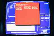 The graphics package involves simple character manipulation (as opposed to addressing individual pixels). The DOS text mode has a resolution of 640 x 350 pixels. The standard font size is 8 x 14 pixels, or 25 rows by 80 columns. I chose an 8 x 9 pixel font which gave me 38 rows by 80 columns, or over 50% more addressable characters.