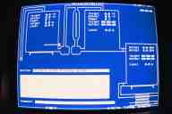 The graphics package involves simple character manipulation (as opposed to addressing individual pixels). The DOS text mode has a resolution of 640 x 350 pixels. The standard font size is 8 x 14 pixels, or 25 rows by 80 columns. I chose an 8 x 9 pixel font which gave me 38 rows by 80 columns, or over 50% more addressable characters.